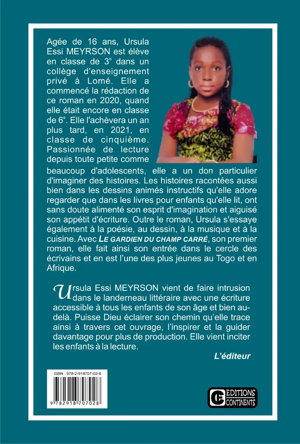 Ursula Essi MEYRSON vient de faire intrusion dans le landerneau litteraire avec une ecriture accessible à tous les enfants de son âge et bien au- delà. Puisse Dieu éclairer son chemin qu’elle trace ainsi à travers cet ouvrage, l’inspirer et la guider davantage pour plus de production. Elle vient inciter les enfants à la lecture.